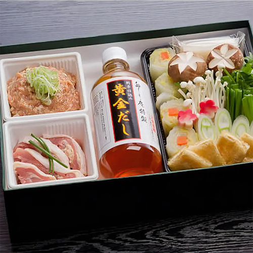 - 特選つみれパック200g、国産鶏もも肉120g、黄金だし500ml(2倍濃縮)