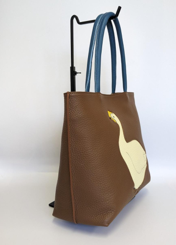 - 「鞄工房 香」アヒルのレザートートバッグ(ブラウン) FAA3049