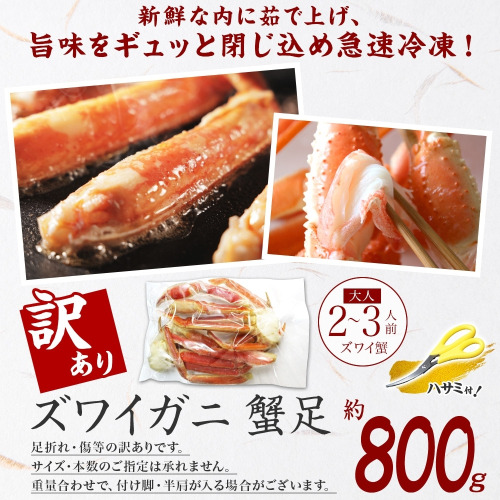 1543. 訳あり ボイル ズワイガニ足 800g 期間限定 約2-3人前 食べ方ガイド・専用ハサミ付 数量限定 カニ かに 蟹 海鮮 送料無料 期間限定 数量限定 北海道 弟子屈町