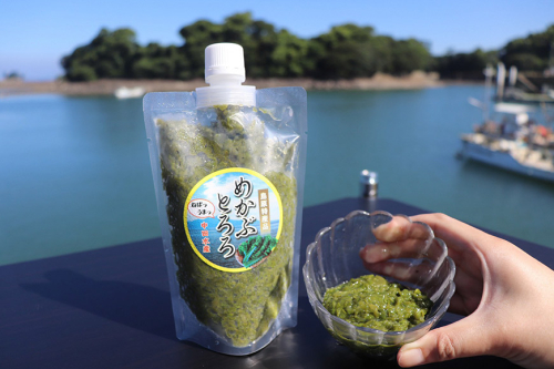 中田水産が、日本一の干満差が作り出す強い潮流と雲仙普賢岳の恩恵を受けたミネラル豊富な有明海で育てた「めかぶ」を無添加自然食品として「きざみとろろ」に加工しました。 チューブ容器に入っているので、手が汚れず衛生的で取り出したい分だけ出せる商品となっています。 厳選した素材の味を知ってもらうため、あえて味はつけておりませんので、お好みの調味料(ポン酢や醤油、ドレッシングなど)と混ぜて自由にアレンジしてお召し上がりください。 おすすめの食べ方はシンプルにオン・ザ・ライス! 温かいご飯との相性は抜群で、島原名物もろみ納豆を加えてアツアツご飯にかけたり、ゆずなどの爽やか風味のドレッシングと混ぜて、オリジナルドレッシングにするのもおすすめです。 「めかぶ」には、栄養成分には免疫力を高めると言われている「フコイダン」や、便通を良くする「アルギン酸」が豊富で、水溶性植物繊維の効果で食事の血糖値上昇を抑える働きもあります。 <中田水産>
