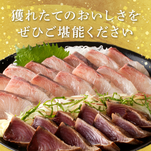 大和海商の定置網漁で獲れた「旬の高級魚」のお刺身です。 その時期に獲れる魚の中で、高級魚をお届けします。 大和海商独自の方法で朝ジメし、魚を傷つけることなく最高の鮮度と状態を保つよう徹底管理しています。 日向灘で獲れた旬の海の幸をお刺身でご賞味ください。
