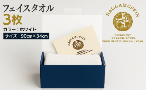 高級泉州タオル ラガマフィン フェイスタオル ホワイト 3枚【国産 日用品 上質 タオル 国内製造】 099H2471 1044325 - 大阪府泉佐野市