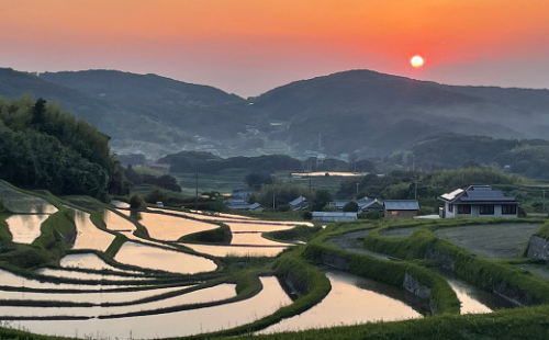 淡路島北部に位置する寒暖差の大きい生田村の粘土質の棚田は、美味しいお米を育てます。