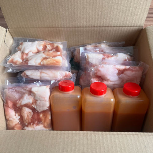 - 丸腸3kg(100g×30個)、西京味噌タレ1200ml(400ml×3個もしくは100ml×12本※選べません)