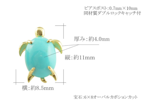K18 ハワイアン「ホヌピアス」は、パワーストーンで作る愛らしい亀のピアスです。
