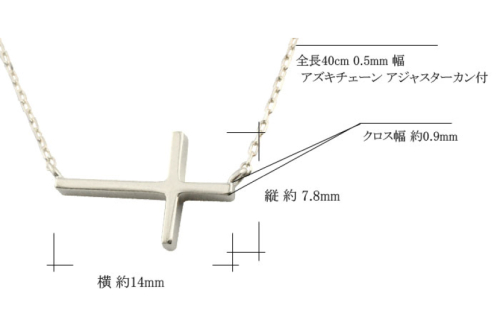 ・ペンダントトップサイズ(クロス部分・取り外し不可):縦約7.8mm、横約14mm、厚さ約1.7mm、クロス幅約0.9m、刻印 pt900