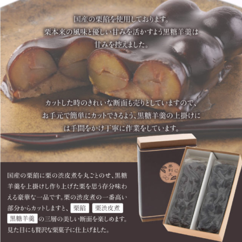 ☆栗本来の風味と優しい甘みを活かすよう黒糖羊羹は甘みを控えました。