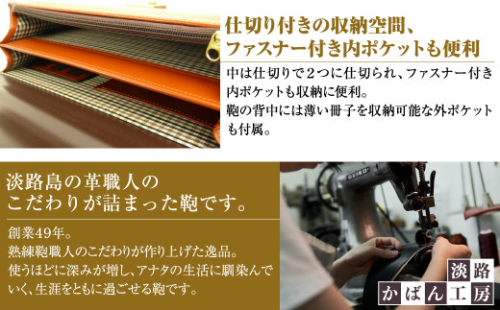 【日本製の安心感】 創業50年の実績と日本製セカンドバッグの安心感!!淡路かばん工房の熟練の鞄職人の手による、アタッシュケース用持ち手付属の革鞄。専門店でも入手が難くなってきた日本製の本革の革鞄です。
