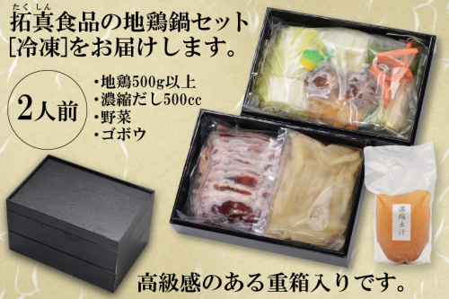 拓真食品の地鶏鍋セット 野菜付 (2人前)をお届けします。