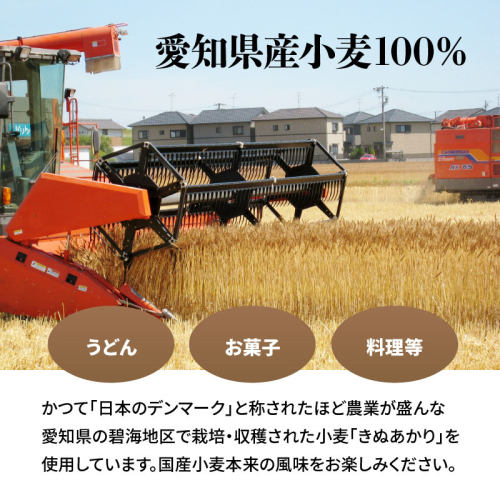 かつて「日本のデンマーク」と称されたほど農業が盛んな愛知県の碧海地区で栽培・収穫された小麦「きぬあかり」を100%使用しています。国産小麦本来の風味をお楽しみください。