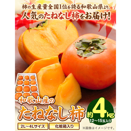 - 【秋の味覚】和歌山産 の たねなし 柿 2L~4Lサイズ 約 4kg(化粧箱入り)厳選館【先行予約】《2026年10月上旬-11月上旬頃出荷》和歌山県 日高川町 柿 カキ かき ジューシー フルーツ たねなし