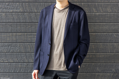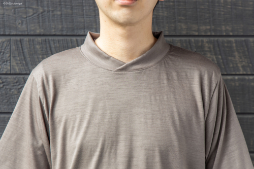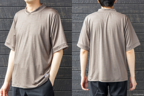 また、首回りの部分を通常のカットソーより、1.3倍大きくし、ジャケットを合わせた時に襟裏が肌に直接当たらないように設計されているため、襟裏の汚れを軽減できる仕様です。