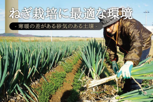 美味しいネギができる理由は、こだわりの栽培方法の他にも、宮城県角田市がネギの生育に最適な条件がそろっている事も挙げられます。東北でありながら積雪量が少なく、盆地のため寒暖の差がある気候のため、ネギが傷まずにじっくりと糖分を蓄えて育ちます。一級河川の阿武隈川の沿岸部にあるカマシチねぎ屋のネギ畑は、風通りが良く、ネギに適した砂気のある土壌のため、ネギが美味しく育つ環境が揃っています。