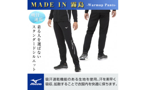 B0-180-03 ミズノ・ウォームアップパンツ(09:ブラック×シルバー・M)【ミズノ】 日本製 国産 スポーツ 運動 トレーニング ウエア ウェア パンツ 吸汗速乾 ランニング ジャージ