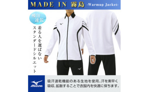 - C0-098-03ミズノ・ウォームアップジャケット(01:ホワイト×ブラック×ブラック・M)【ミズノ】 日本製 国産 スポーツ 運動 トレーニング ウエア ウェア ジャケット 吸汗速乾 ランニング ジャージ
