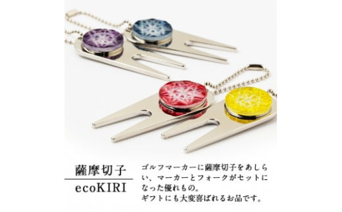 ゴルフマーカーに薩摩切子をあしらい、マーカーとフォークがセットになった優れもの。