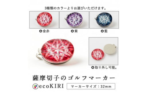 ゴルフマーカーに薩摩切子をあしらい、マーカーとフォークがセットになった優れもの。 4種類のカラー(金赤・紫・藍・黄)よりお選びいただけます。 (株)美の匠ガラス工房弟子丸 0995-73-6522 《地産理由》市内にある工房で製造の全工程が行われている製品