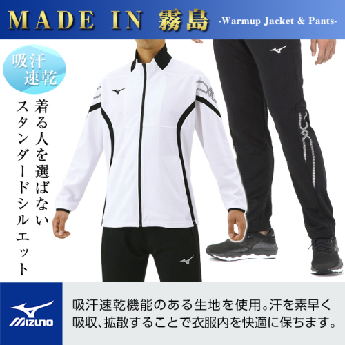 - E0-009-02 ミズノ・ウォームアップ上下セット(ジャケット:01カラー、パンツ:09カラー・S)【ミズノ】 日本製 国産 スポーツ 運動 トレーニング ウエア ウェア セットアップ 吸汗速乾 ランニング ジャージ