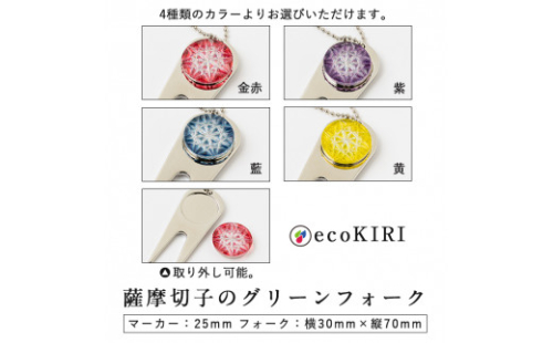 ゴルフマーカーに薩摩切子をあしらい、マーカーとフォークがセットになった優れもの。