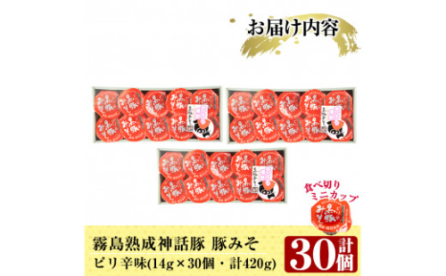 - Z6-012-P 霧島神話豚の豚みそ!(ピリ辛味30個)【富士食品】霧島市 豚肉 豚味噌 ミソ 味噌 ご飯のお供 調味料 おかず 小分け 和風 惣菜 お弁当