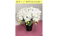 三河焼の植木鉢に、造花の胡蝶蘭小輪5本を仕立て、消臭効果のある、光触媒加工を施した商品。