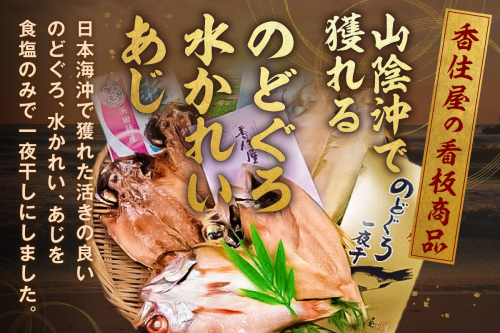 山陰浜田 香住屋のこだわり干物「のどぐろ・水かれい・あじ干物」約600g 魚介類 魚貝類 干物 一夜干し セット 詰め合わせ 【024_1986】