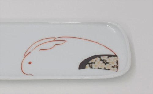 深川製磁は1894年に設立された有田焼の窯元です。 商品は明治期より続く工房で職人の手により、ひとつひとつ丁寧に制作されています。 明治期のデザインである愛らしいうさぎと桜をモチーフにしたお皿です。 柄違いでセットにいたしました。一文字皿の細長い形は小皿などの食器を重ねて使用することもでき、 盛り付け次第で色々な表情をみせてくれます。 お刺身、焼き魚などの和食はもとより、オードブルやスイーツ等にもお使い頂ける多用途なうつわです。 窯元:深川製磁 提供:深川製磁