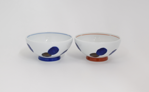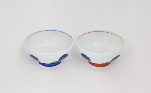深川製磁 有田焼 丸紋(赤・呉須)ペア中丼 A65-24