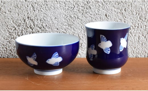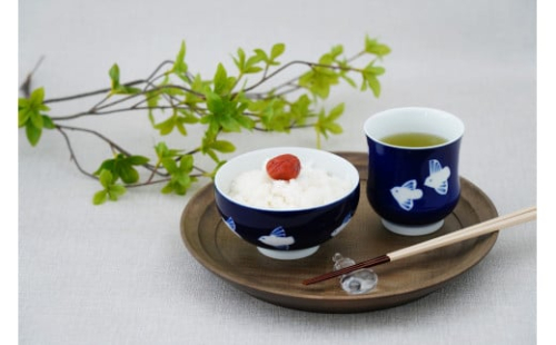 有田焼 ふくら雀 飯碗・湯呑セット【深川製磁】食器 器 うつわ 皿 ごはん茶碗 茶わん ちゃわん 湯呑み カップ 青 染付 鳥 縁起物 ギフト 食洗機対応 A80-59 1057772 - 佐賀県有田町