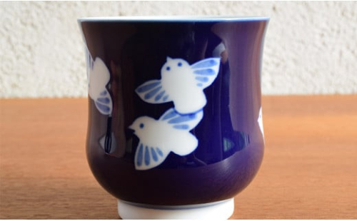 深川製磁は明治27年に設立された有田焼の窯元です。 現在も明治期から続く工房にて、職人の手によりひとつひとつ丁寧にやきもの作りを行っています。 ふっくらした雀の姿を愛らしく表現した「ふくら雀」意匠。 ふくら雀は福来雀とも書き、福を連れてきてくれる雀とも云われています。 雀の部分を墨で描き、全体を呉須で染めて窯に入れ、雀の部分を「墨ハジキ」技法で白抜きにして制作しています。 毎日お使いいただける飯碗と湯呑をセットにしてお届け致します。