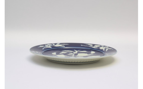 深川製磁は明治27年に設立された有田焼の窯元です。 現在も明治期から続く工房にて、職人の手によりひとつひとつ丁寧にやきもの作りを行っています。 深川製磁の代名詞とも云える瑠璃色のお皿です。 他にはない深みのある瑠璃地に、白抜きで花と葉をつけたざくろの折枝を表現しました。 お持ちの様々な色合いのうつわとも相性が良く、日常使いに、又おもてなしにも活躍してくれるお皿です。