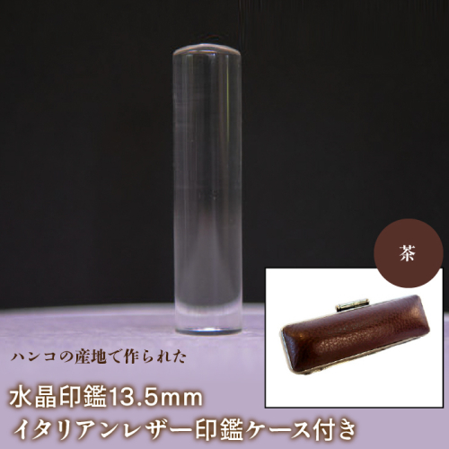 • はんこの産地で作られた水晶印鑑13.5mm イタリアンレザ−印鑑ケース付き FCH003
