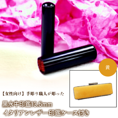 【女性向け】手彫り職人が彫った黒水牛印鑑13.5mm イタリアンレザ−印鑑ケース付き FCH011 1058741 - 山梨県富士河口湖町