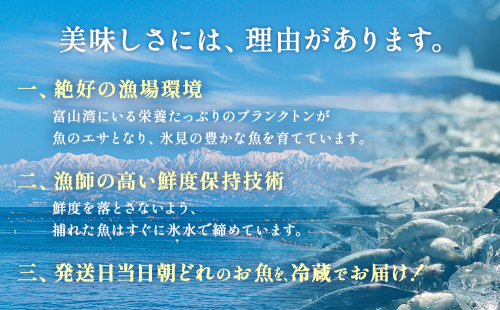全国屈指の魚の美味しい場所富山湾。氷見漁港の天然の魚を是非ご家庭でご賞味ください。