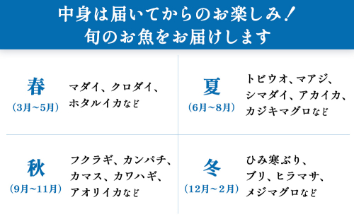 ※水揚げ状況の都合により、2・3月のみ配送をスキップし、4月以降お届けを再開いたします。( そのため、配送月は 1月・4月・5月・6月・7月・8月 となります)