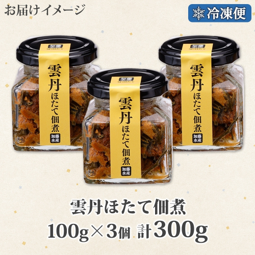 3432. 雲丹ほたて佃煮 100g 3個 計300g 小分け 雲丹 ウニ うに 帆立 ホタテ ほたて 佃煮 つくだ煮 瓶詰 おつまみ 珍味 海鮮 グルメ 冷凍 送料無料 北海道 弟子屈町