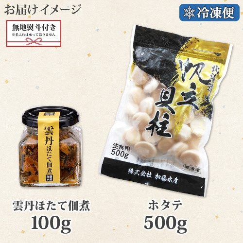 3440. 無地熨斗 雲丹ほたて佃煮 100g ホタテ 500g 小分け 雲丹 ウニ うに 帆立 ホタテ ほたて 佃煮 つくだ煮 瓶詰 海鮮 熨斗 のし 名入れ不可 送料無料 北海道 弟子屈町