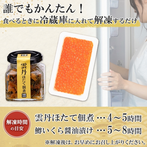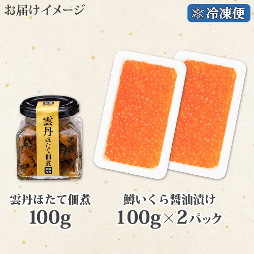 - 3631. 雲丹ほたて佃煮 鱒いくら醤油漬け 計300g 小分け 雲丹 ウニ うに 帆立 ホタテ ほたて いくら イクラ 魚卵 佃煮 おつまみ 海鮮 送料無料 北海道 弟子屈町
