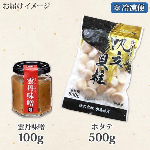 3437. 雲丹味噌瓶 100g ホタテ500g 小分け ウニみそ うにみそ 雲丹 ウニ うに 味噌 みそ 瓶詰 ホタテ 帆立 ほたて 海鮮 送料無料 北海道 弟子屈町