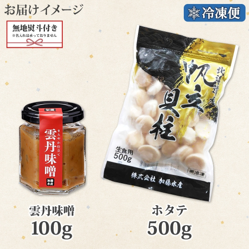 3438. 無地熨斗 雲丹味噌瓶 100g ホタテ500g 小分け ウニみそ うにみそ 雲丹 ウニ うに 味噌 みそ 瓶詰 ホタテ 帆立 ほたて 海鮮 送料無料 熨斗 のし 名入れ不可 北海道 弟子屈町