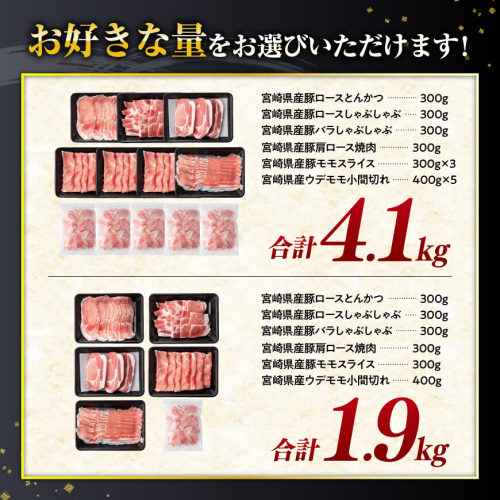 - テレビで紹介されました!※発送時期・グラムが選べる※宮崎県産 豚肉 6種 1.9kg~4.1kg 【 国産 宮崎県産 肉 豚肉 ぶた ロース 豚バラ とんかつ 焼肉 ミヤチク 】