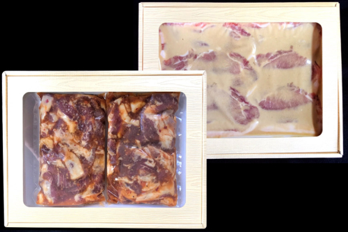 • AE303雲仙もみじ豚「中落ちカルビ」スタミナ焼き 600g・「サーロインロース」西京味噌漬け 700g