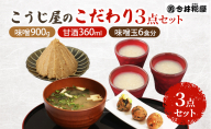 糀たっぷりの「甘口味噌」、肉や魚とも相性の良い「レモン塩こうじ」、秋田伝統!お漬物の素「寒こうじ」の詰合せです。