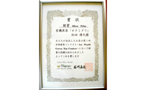 第1回世界緑茶コンテストで銀賞に輝いた、当園で一番人気の緑茶です。