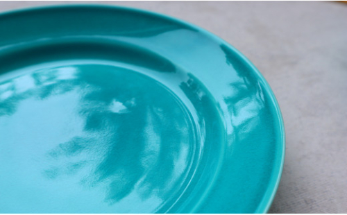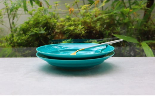 人気カラーのターコイズブルーのリム皿2枚セットです。