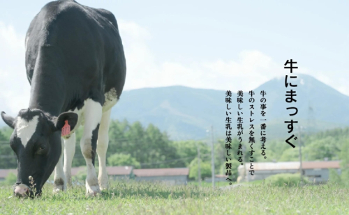 冷涼な気候とやわらかくおいしい湧き水に恵まれた環境の中、自家産牧草の栽培と約150頭の牛たちをこだわって飼育、搾乳しその良質な生乳で乳製品を生産から販売まで一貫して行っております。