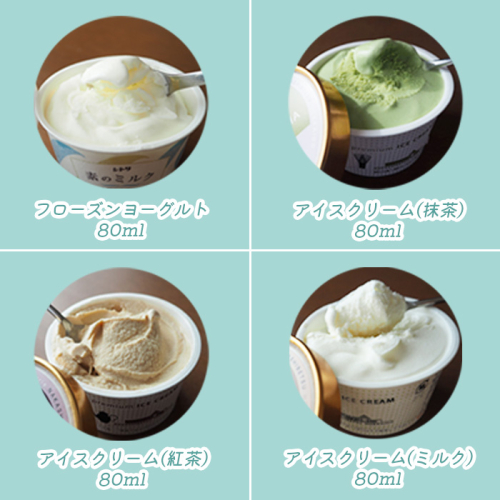 ・アイスクリーム(ミルク4コ、紅茶2コ、抹茶2コ、フローズンヨーグルト2コ)
