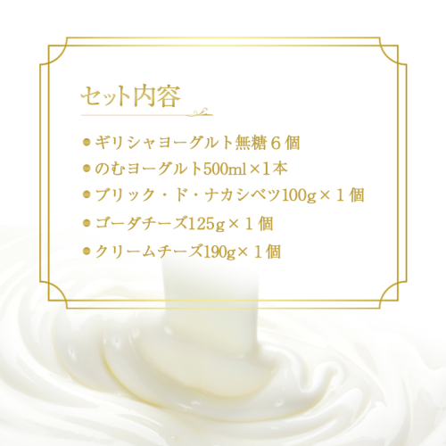 ヨーグルト チーズセット ギリシャヨーグルト 無糖 6個 のむヨーグルト 500ml×1本 ブリック・ド・ナカシベツ 100g ゴーダチーズ 125g クリームチーズ 190g 詰合せ チーズ グリークヨーグルト オーガニック グリーク greek ギリシャ ふるさと納税 北海道 中標津町 中標津