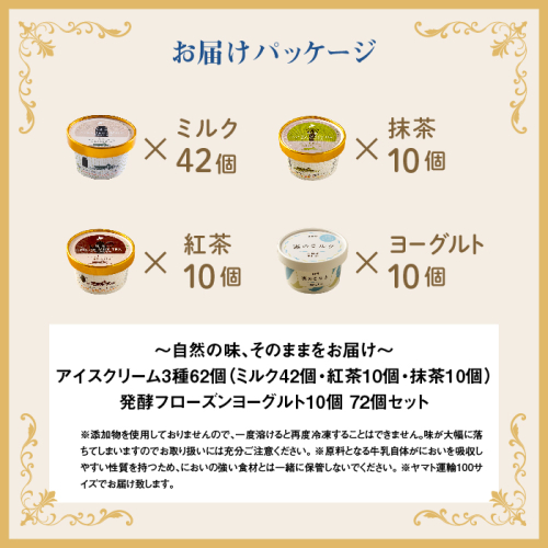 アイス 3種 62個 フローズンヨーグルト 10個 セット ふるさと納税 オンライン 申請 北海道 中標津 無添加 ミルク 紅茶 抹茶 フローズンヨーグルト 計72個 スイーツ デザート 食後 おやつ 詰め合わせ セット オーガニック ふるさと納税 北海道