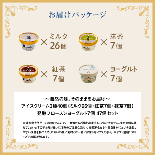 アイスクリーム3種40個とフローズンヨーグルト7個セット 無添加 アイス ふるさと納税 北海道 オンライン 申請 ミルク 紅茶 抹茶 フローズンヨーグルト 計47個 スイーツ デザート 食後 おやつ 詰め合わせ セット オーガニック ふるさと納税 北海道 中標津町 中標津